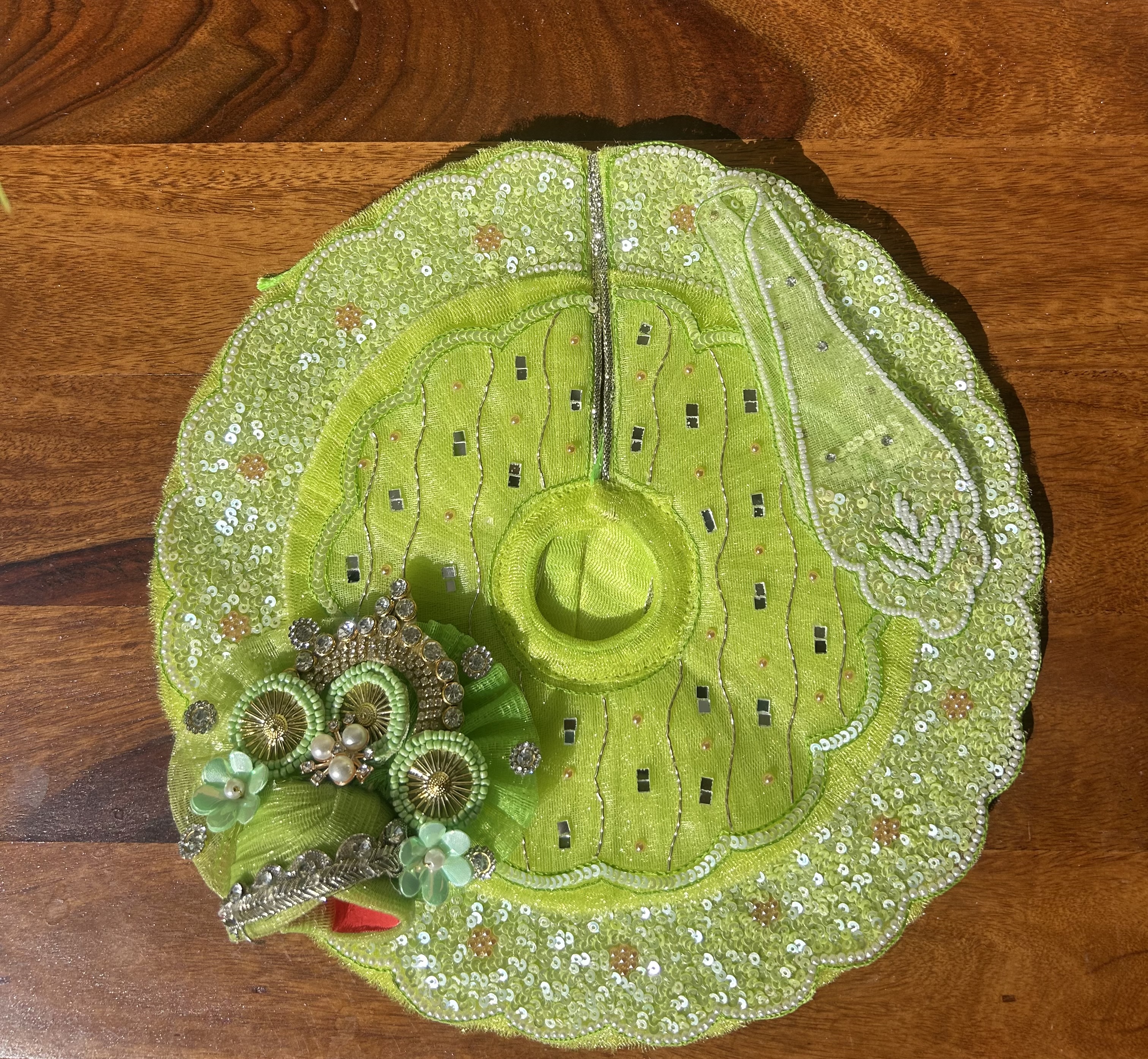 Laddu Gopal dresses are intricately crafted with detailed designs and embellishments, highlighting the craftsmanship and precision involved in creating these outfits. These dresses are made with high-quality fabrics like silk, velvet, and cotton for a luxurious feel. Adorned with zari work, sequins, beads, and embroidery offering a majestic and elegant appearance to the deity, making them ideal for grand occasions and festive events. Discover our beautifully handcrafted Laddu Gopal Poshak, designed to adorn your beloved deity with elegance and devotion.