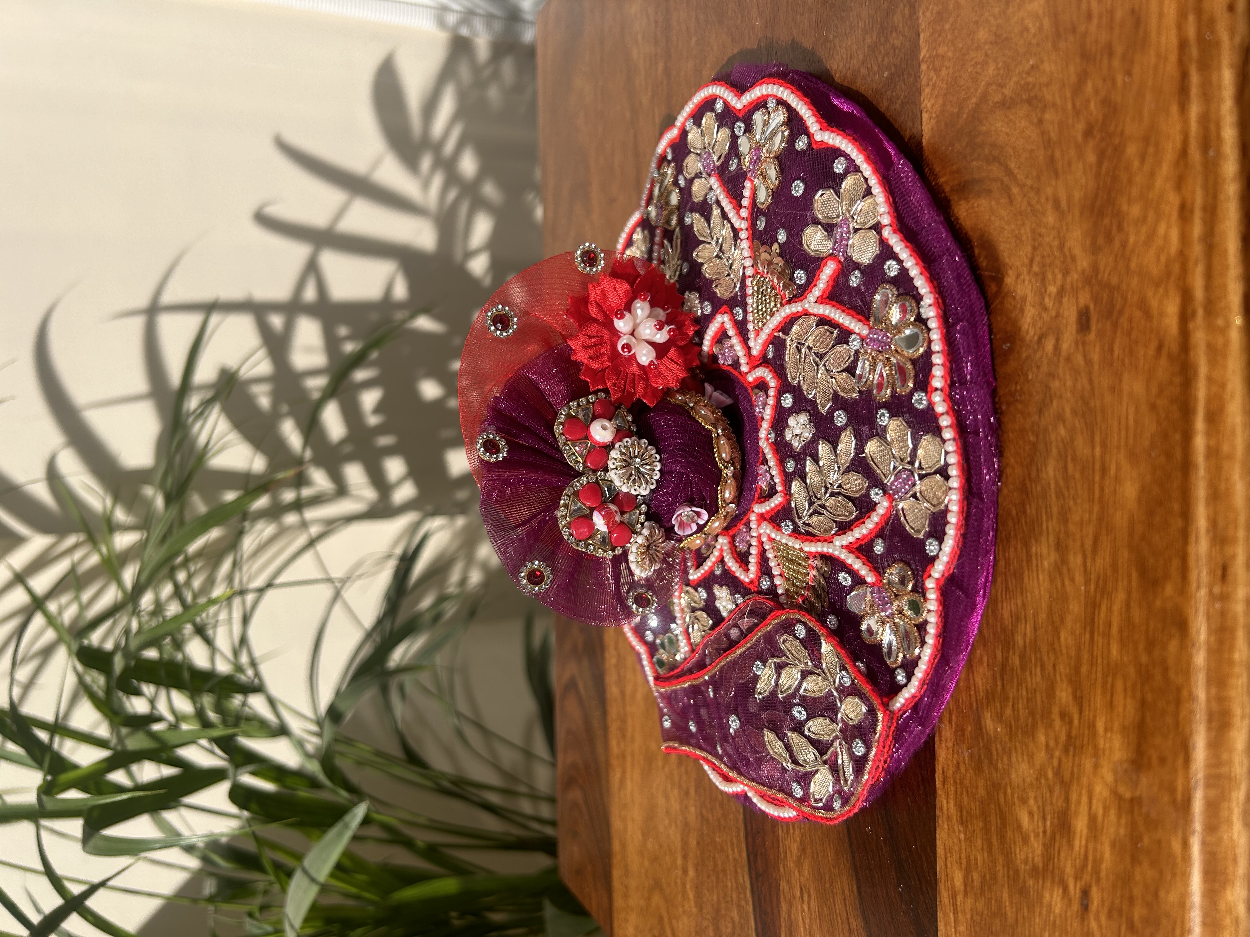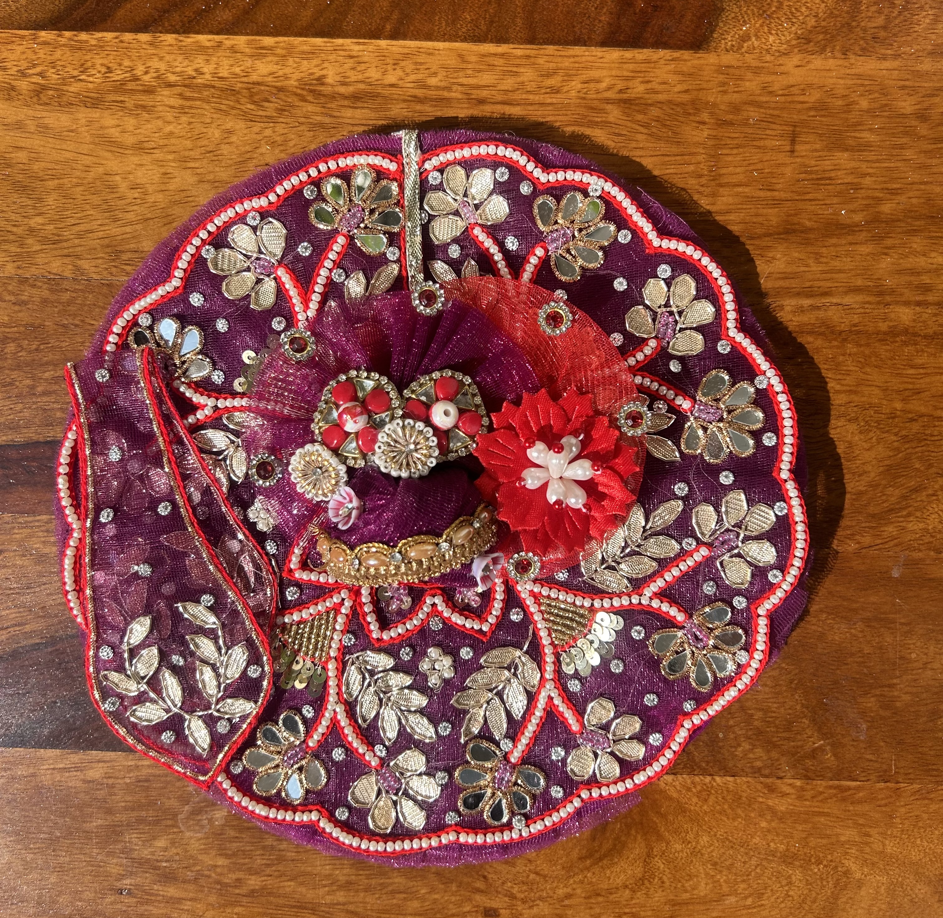 Laddu Gopal dresses are intricately crafted with detailed designs and embellishments, highlighting the craftsmanship and precision involved in creating these outfits. These dresses are made with high-quality fabrics like silk, velvet, and cotton for a luxurious feel. Adorned with zari work, sequins, beads, and embroidery offering a majestic and elegant appearance to the deity, making them ideal for grand occasions and festive events. Discover our beautifully handcrafted Laddu Gopal Poshak, designed to adorn your beloved deity with elegance and devotion.