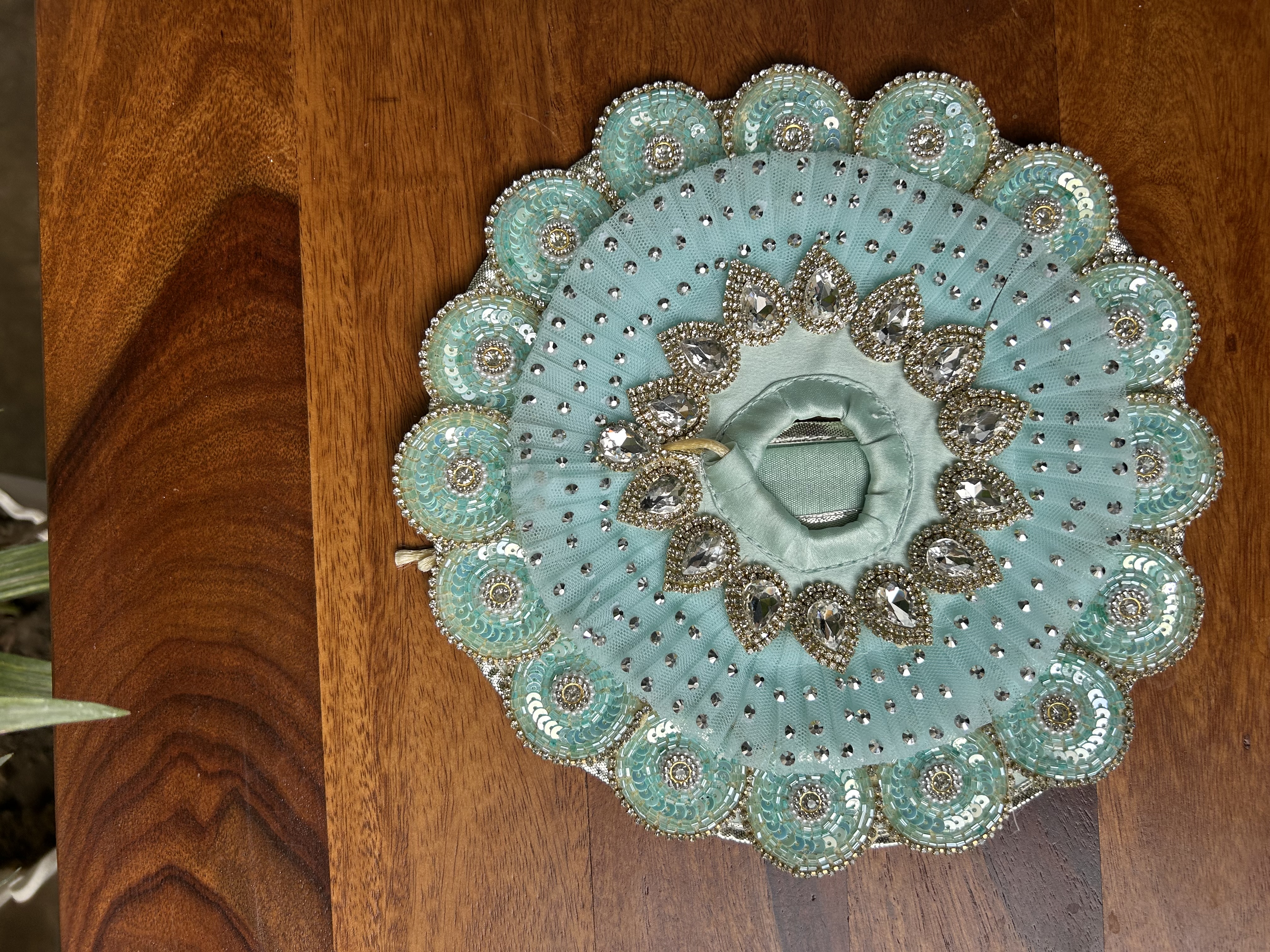 Laddu Gopal dresses are intricately crafted with detailed designs and embellishments, highlighting the craftsmanship and precision involved in creating these outfits. These dresses are made with high-quality fabrics like silk, velvet, and cotton for a luxurious feel. Adorned with zari work, sequins, beads, and embroidery offering a majestic and elegant appearance to the deity, making them ideal for grand occasions and festive events. Discover our beautifully handcrafted Laddu Gopal Poshak, designed to adorn your beloved deity with elegance and devotion.