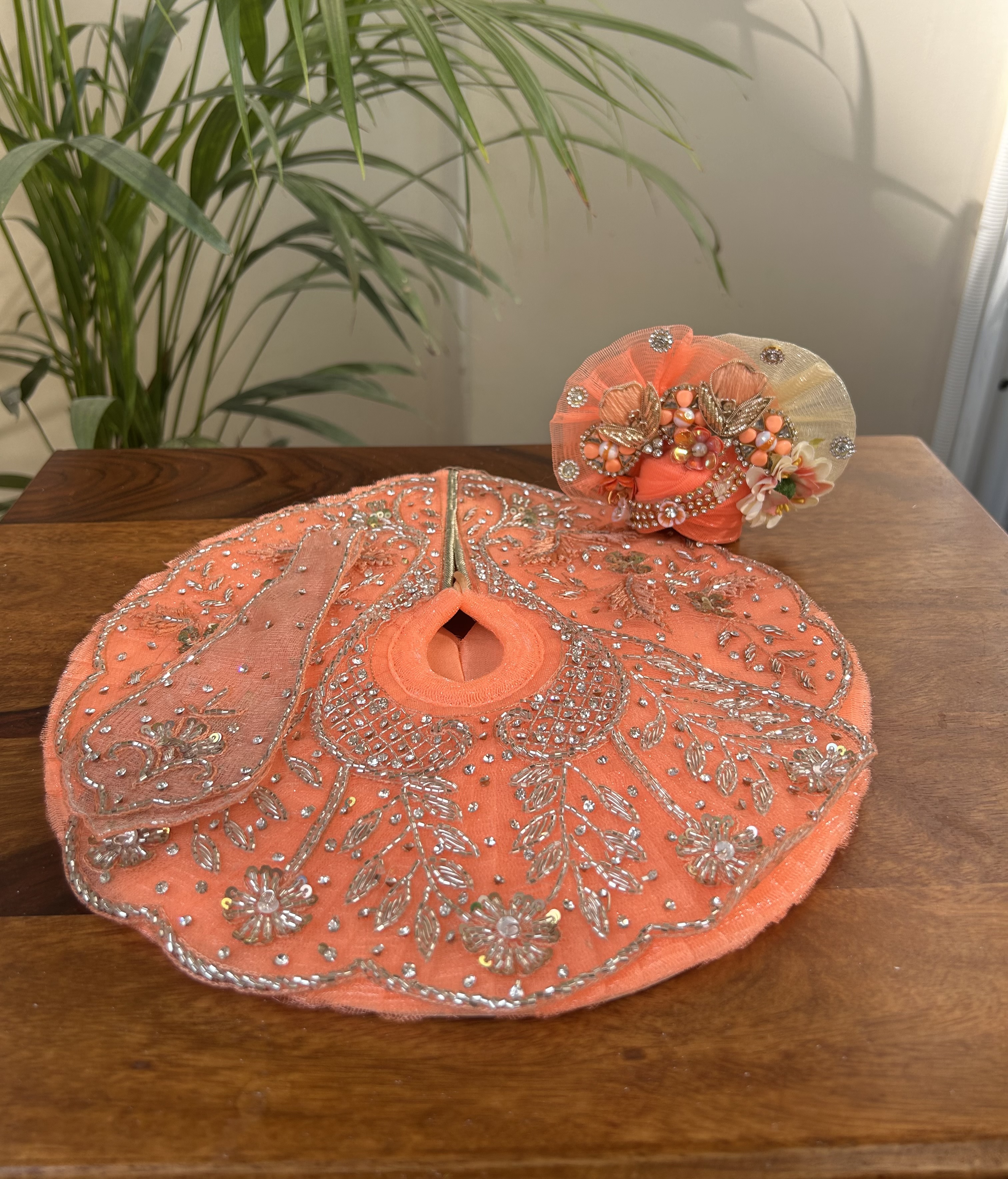 Laddu Gopal dresses are intricately crafted with detailed designs and embellishments, highlighting the craftsmanship and precision involved in creating these outfits. These dresses are made with high-quality fabrics like silk, velvet, and cotton for a luxurious feel. Adorned with zari work, sequins, beads, and embroidery offering a majestic and elegant appearance to the deity, making them ideal for grand occasions and festive events. Discover our beautifully handcrafted Laddu Gopal Poshak, designed to adorn your beloved deity with elegance and devotion.