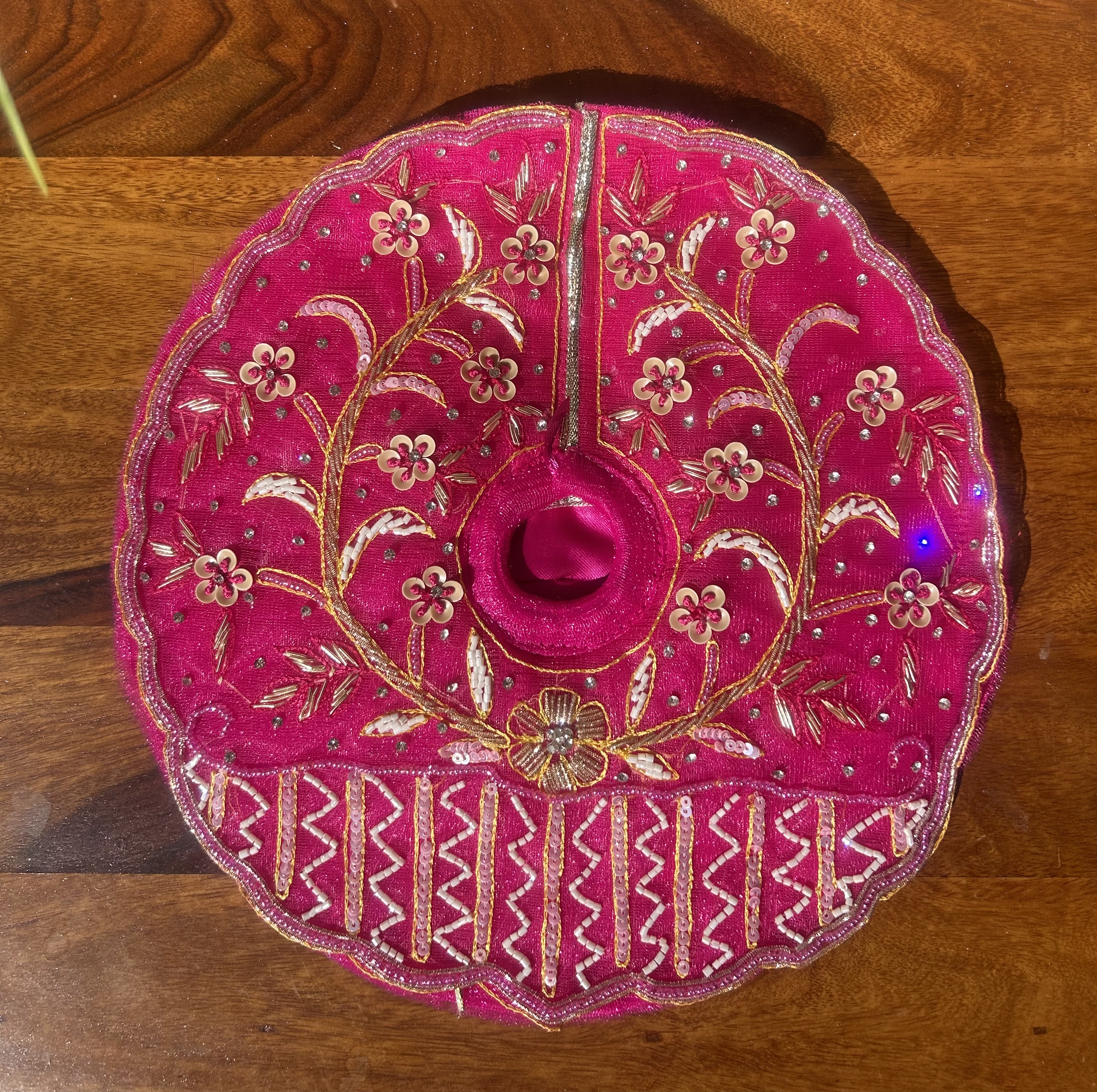 Laddu Gopal dresses are intricately crafted with detailed designs and embellishments, highlighting the craftsmanship and precision involved in creating these outfits. These dresses are made with high-quality fabrics like silk, velvet, and cotton for a luxurious feel. Adorned with zari work, sequins, beads, and embroidery offering a majestic and elegant appearance to the deity, making them ideal for grand occasions and festive events. Discover our beautifully handcrafted Laddu Gopal Poshak, designed to adorn your beloved deity with elegance and devotion.
