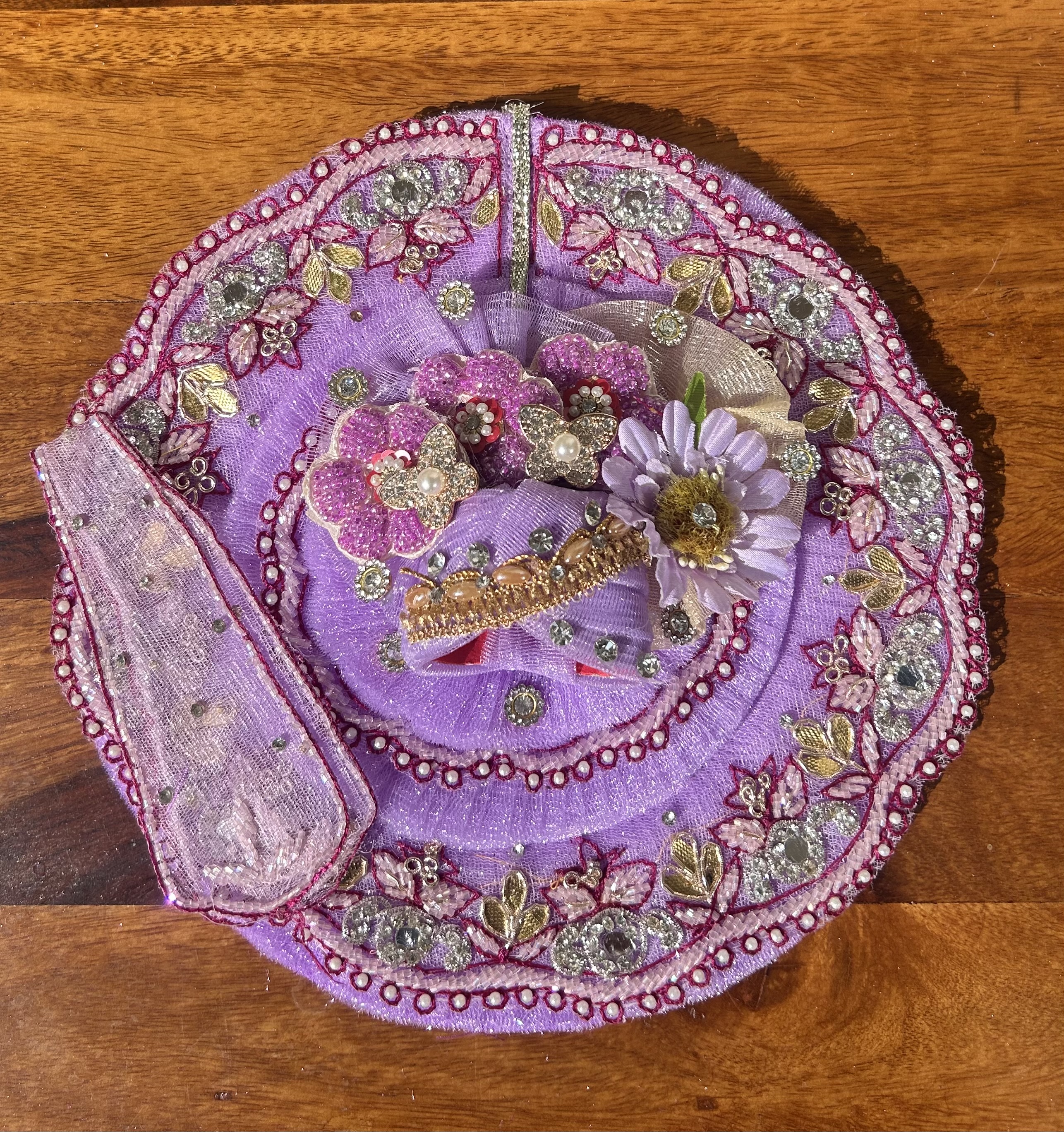Laddu Gopal dresses are intricately crafted with detailed designs and embellishments, highlighting the craftsmanship and precision involved in creating these outfits. These dresses are made with high-quality fabrics like silk, velvet, and cotton for a luxurious feel. Adorned with zari work, sequins, beads, and embroidery offering a majestic and elegant appearance to the deity, making them ideal for grand occasions and festive events. Discover our beautifully handcrafted Laddu Gopal Poshak, designed to adorn your beloved deity with elegance and devotion.