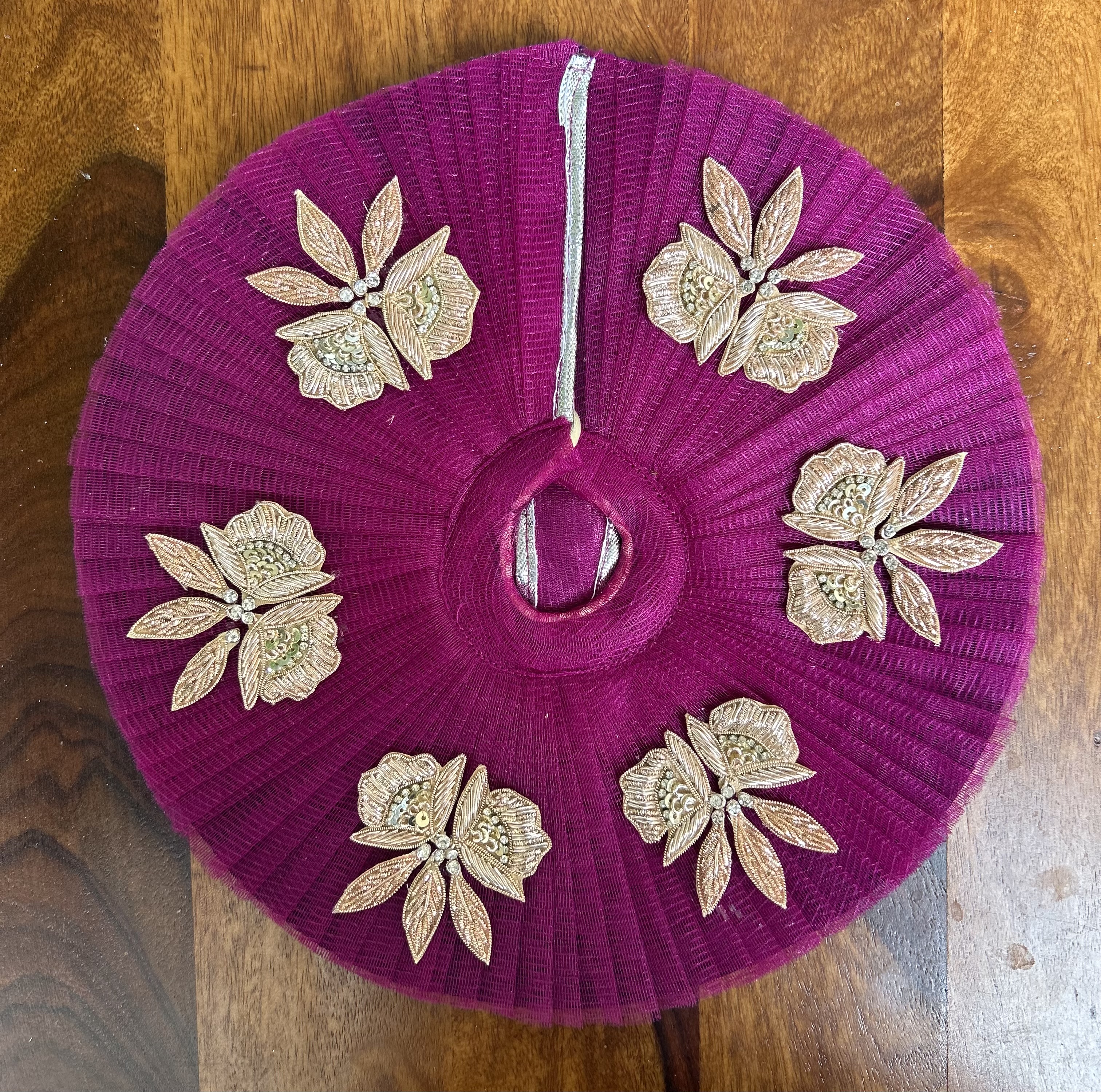 Laddu Gopal dresses are intricately crafted with detailed designs and embellishments, highlighting the craftsmanship and precision involved in creating these outfits. These dresses are made with high-quality fabrics like silk, velvet, and cotton for a luxurious feel. Adorned with zari work, sequins, beads, and embroidery offering a majestic and elegant appearance to the deity, making them ideal for grand occasions and festive events. Discover our beautifully handcrafted Laddu Gopal Poshak, designed to adorn your beloved deity with elegance and devotion.
