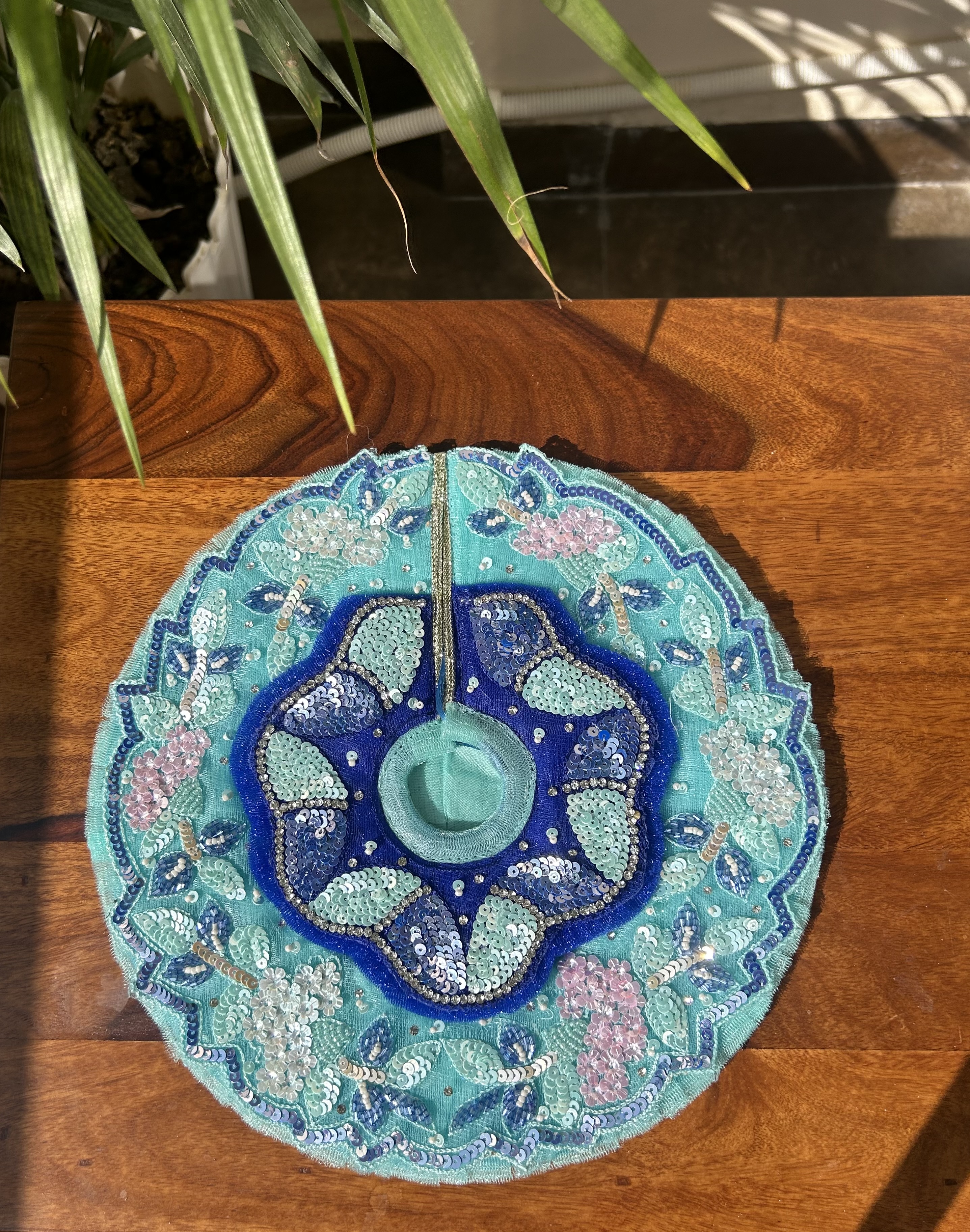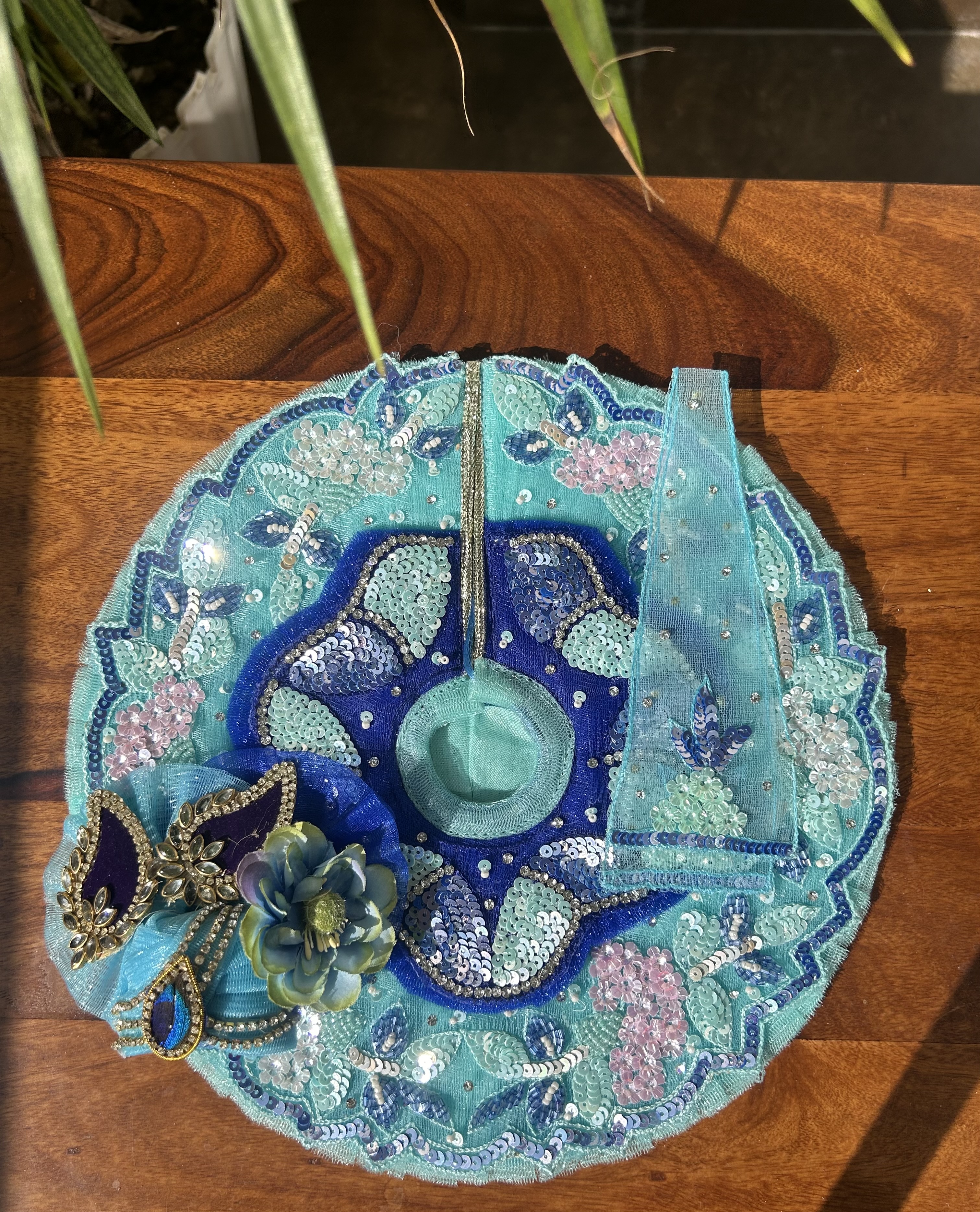 Laddu Gopal dresses are intricately crafted with detailed designs and embellishments, highlighting the craftsmanship and precision involved in creating these outfits. These dresses are made with high-quality fabrics like silk, velvet, and cotton for a luxurious feel. Adorned with zari work, sequins, beads, and embroidery offering a majestic and elegant appearance to the deity, making them ideal for grand occasions and festive events. Discover our beautifully handcrafted Laddu Gopal Poshak, designed to adorn your beloved deity with elegance and devotion.