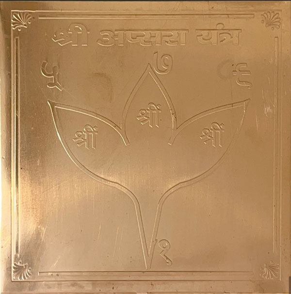 - The Apsaras, celestial beings in Hindu mythology, are associated with divine beauty, elegance, and charm. This yantra embodies these qualities and acts as a medium to invoke their energy in the user’s life.