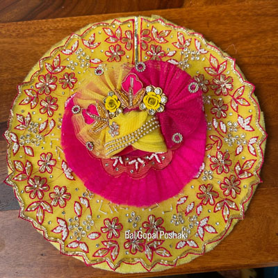 Laddu Gopal dresses are intricately crafted with detailed designs and embellishments, highlighting the craftsmanship and precision involved in creating these outfits. These dresses are made with high-quality fabrics like silk, velvet, and cotton for a luxurious feel. Adorned with zari work, sequins, beads, and embroidery offering a majestic and elegant appearance to the deity, making them ideal for grand occasions and festive events. Discover our beautifully handcrafted Laddu Gopal Poshak, designed to adorn your beloved deity with elegance and devotion.