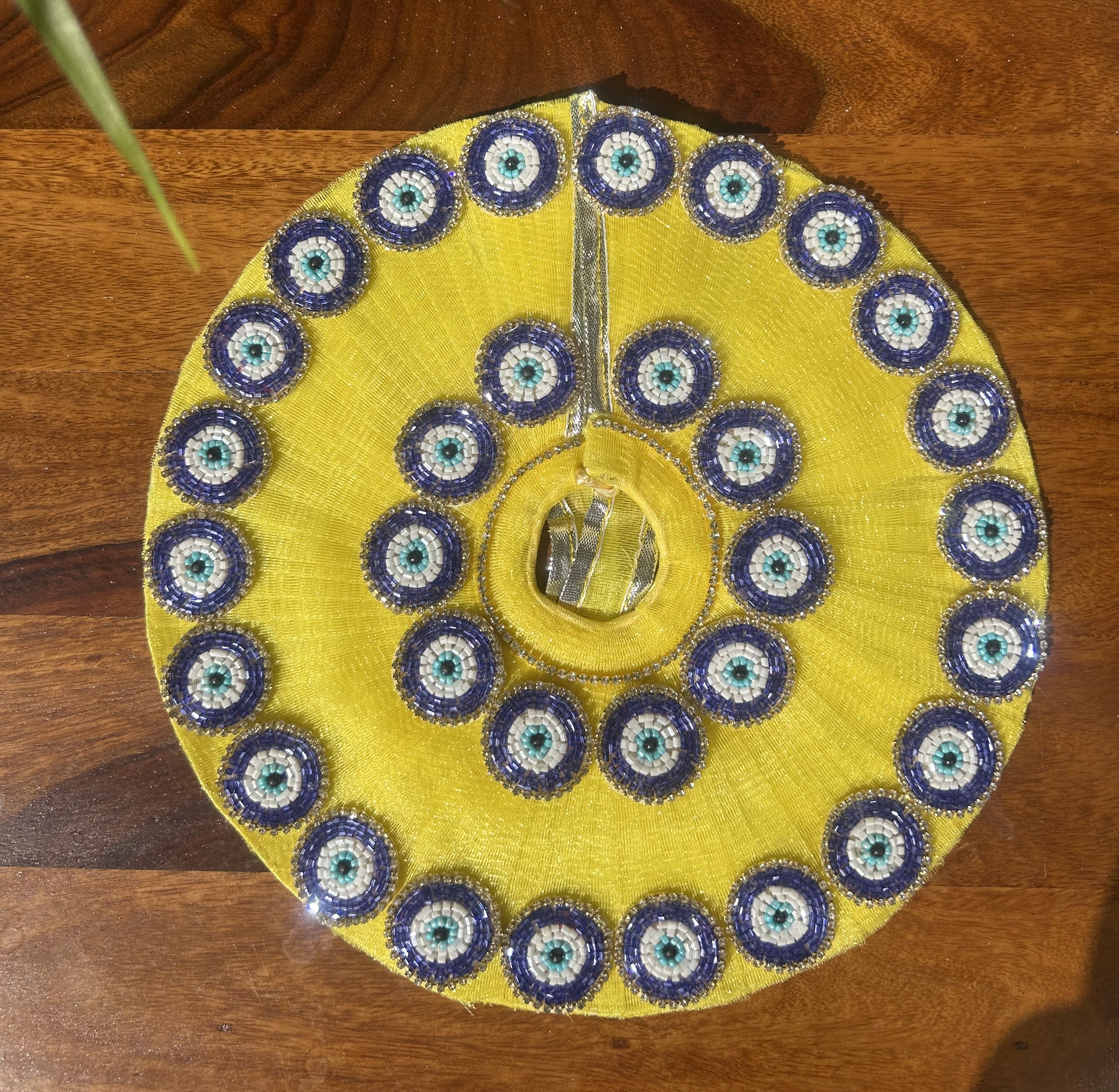 Laddu Gopal dresses are intricately crafted with detailed designs and embellishments, highlighting the craftsmanship and precision involved in creating these outfits. These dresses are made with high-quality fabrics like silk, velvet, and cotton for a luxurious feel. Adorned with zari work, sequins, beads, and embroidery offering a majestic and elegant appearance to the deity, making them ideal for grand occasions and festive events. Discover our beautifully handcrafted Laddu Gopal Poshak, designed to adorn your beloved deity with elegance and devotion.